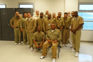 Grady Mitchell sits with his fellow instructors a graduating class of Roots of Success. Photo by DOC staff.