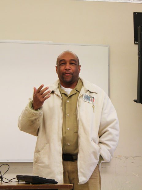 Grady Mitchell sits with his fellow instructors a graduating class of Roots of Success. Photo by DOC staff.
