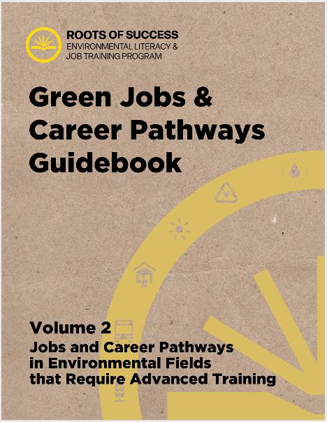 Volume One of the “Roots of Success Green Jobs and Career Pathways Guidebook” provides information about green jobs in six sectors: Water, Waste, Transportation, Energy, Building, and Food sectors. The jobs we describe in the Guidebook are essential to the production, distribution, consumption and management of goods and services that benefit the environment, improve people’s health, conserve natural resources, and/or advance environmental and justice. The majority of the jobs described in Volume One do not require job applicants and employees to have a college degree, although we do include information on how individuals working in these jobs can progress into other jobs and careers with additional job training and educational opportunities.
